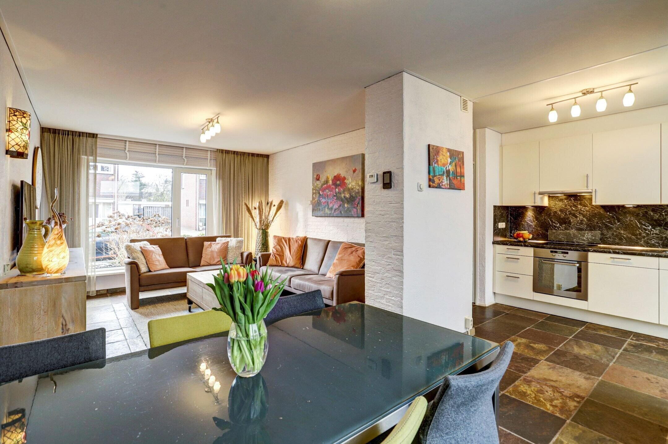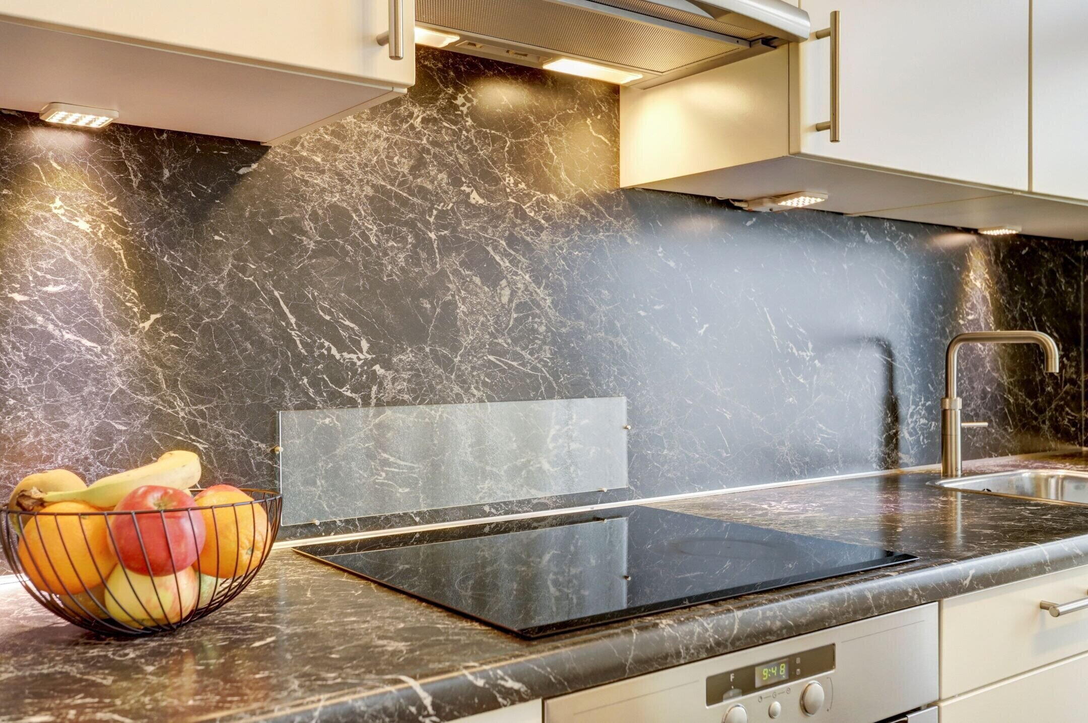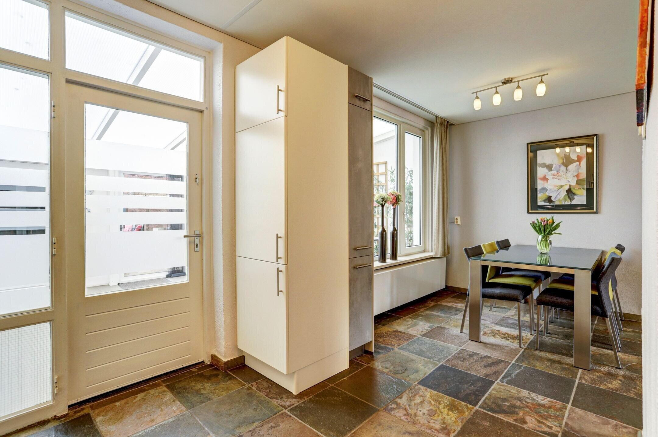 De keuken is keurig netjes onderhouden en kan met gemak nog jaren mee. Zo is de oven pas twee keer gebruikt en kook je prettig op het vierpits inductiefornuis. De Quooker maakt het eenvoudig om direct kokend water te tappen en na het eten zorgt de vaatwasser voor het schoonmaakwerk. Er is volop bergruimte dankzij de vele kastjes en lades, aangevuld met een handige apothekerskast. De keuken is uitgevoerd in een lichte crèmekleur met een donker gemarmerd kunststof aanrechtblad en bijpassende achterwand wat zorgt voor een mooi contrast. Vanuit de keuken heb je bovendien toegang tot de kelder, ideaal voor provisieopslag en met ruimte voor een vriezer.