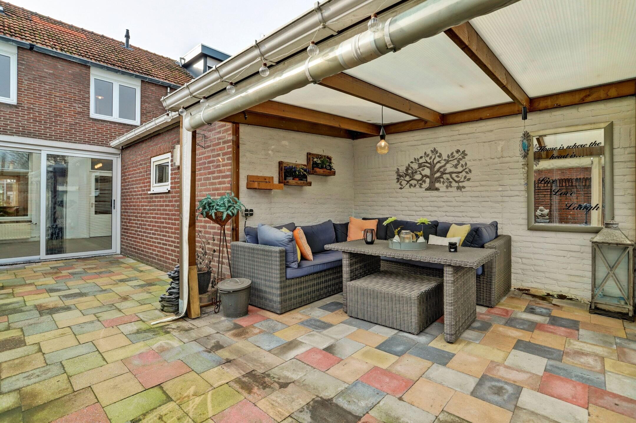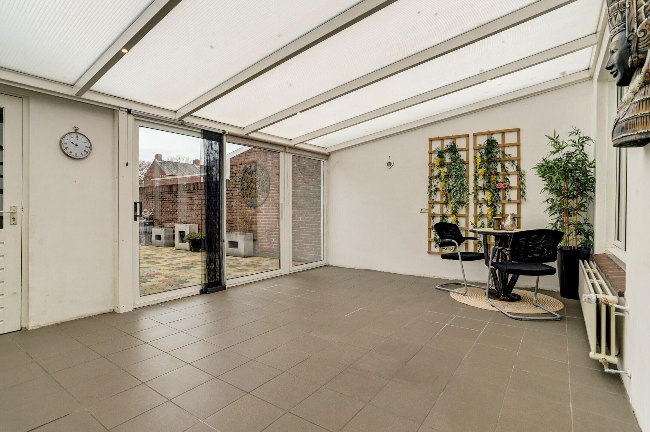 Deze fijne tussenwoning ligt in een rustige straat in Meijel en is keurig netjes bijgehouden en instapklaar. Hier woon je lekker rustig maar met alle comfort binnen handbereik. Bij binnenkomst valt direct de prettige leefruimte op. De lichte woonkamer met open keuken vormt een gezellig geheel en biedt genoeg ruimte om te ontspannen of samen te komen. Een echte meerwaarde is de serre aan de achterzijde waar je dankzij de schuifpui een directe verbinding hebt met de tuin. Hierdoor haal je bij mooi weer buiten moeiteloos naar binnen. Via de serre heb je toegang tot een praktische berging/werkplaats waar ook de witgoedaansluitingen zijn gesitueerd. De achtertuin is onderhoudsvriendelijk aangelegd met losse bloembakken en beschikt over een overdekt terras dat volledig afsluitbaar is met zeilen waardoor je hier al vroeg in het jaar heerlijk beschut kunt zitten. Daarnaast is er nog een fietsenhok aanwezig en via de poort heb je een vrije achterom. Op de eerste verdieping bevinden zich drie ruime slaapkamers, stuk voor stuk prettig van formaat. De badkamer is neutraal ingericht en voorzien van een comfortabele inloopdouche en een dubbele wasbak. Extra bergruimte vind je op de zolder die bereikbaar is via een vlizotrap en ideaal is voor het opbergen van seizoensspullen. Ook aan duurzaamheid is gedacht: op het dak liggen 10 zonnepanelen wat merkbaar scheelt in de maandelijkse energiekosten. Voor de woning ligt bovendien een eigen parkeerplaats met vergunning zodat parkeren altijd eenvoudig en zorgeloos is. Een verzorgde, complete woning op een rustige locatie met verrassend veel extra’s: een plek waar je je snel thuis zult voelen.