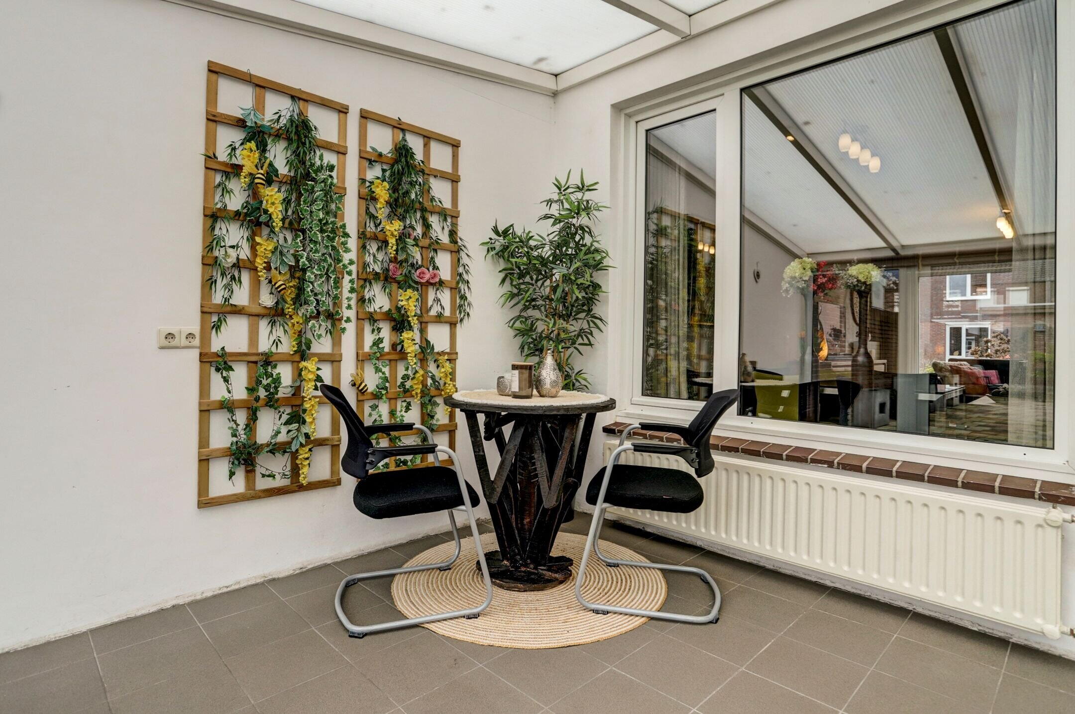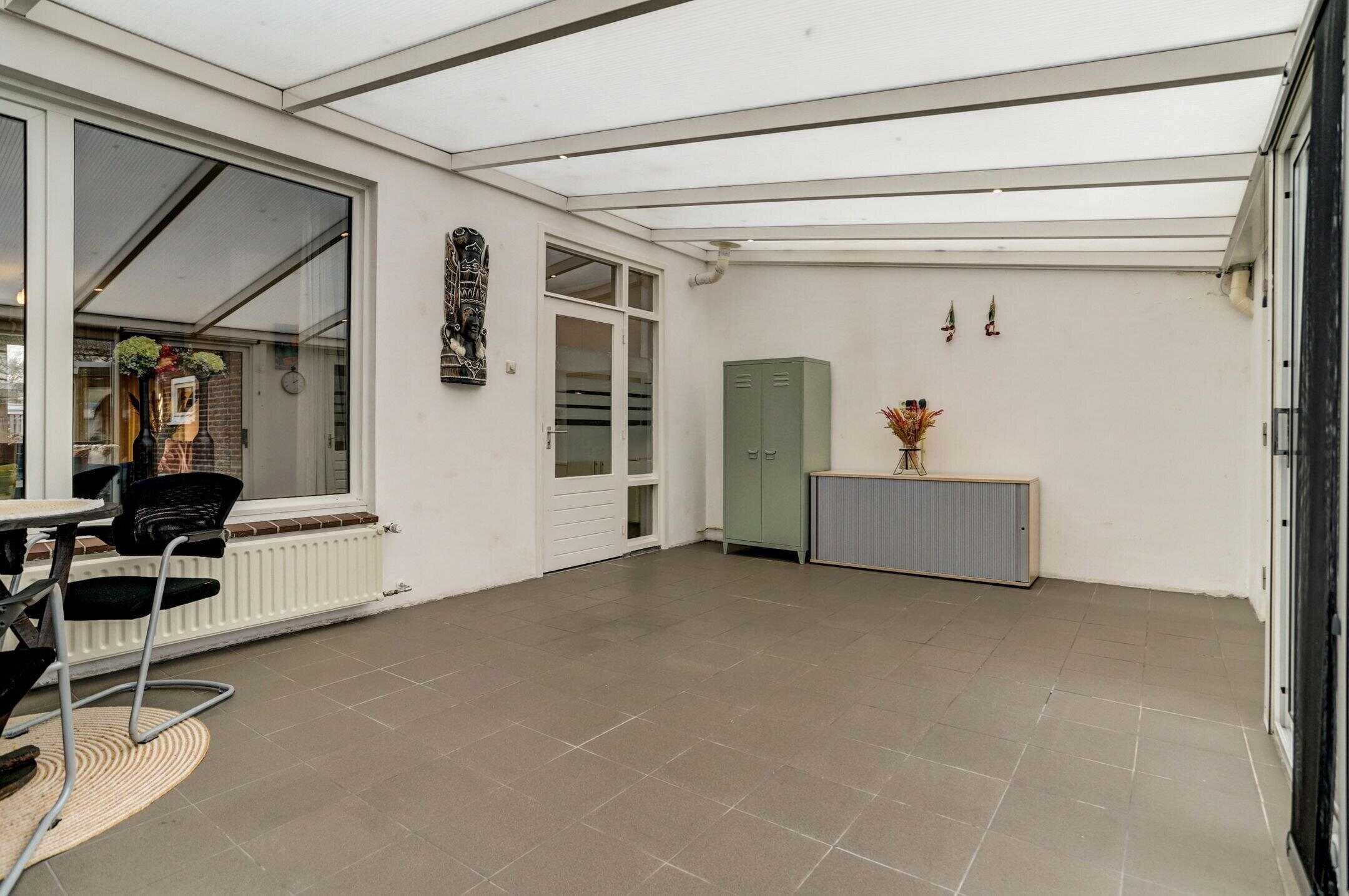Via een deur in de keuken bereik je de serre: een fijne extra leefruimte die verwarmd kan worden waardoor je hier het hele jaar door comfortabel kunt zitten. Bij mooi weer schuif je de schuifpui open en sta je in direct contact met de tuin. Vanuit de serre heb je toegang tot de berging/werkplaats waar ook de witgoedaansluitingen zijn gesitueerd en een extra stroommeteraansluiting. Een praktische en veelzijdige aanvulling op de begane grond.