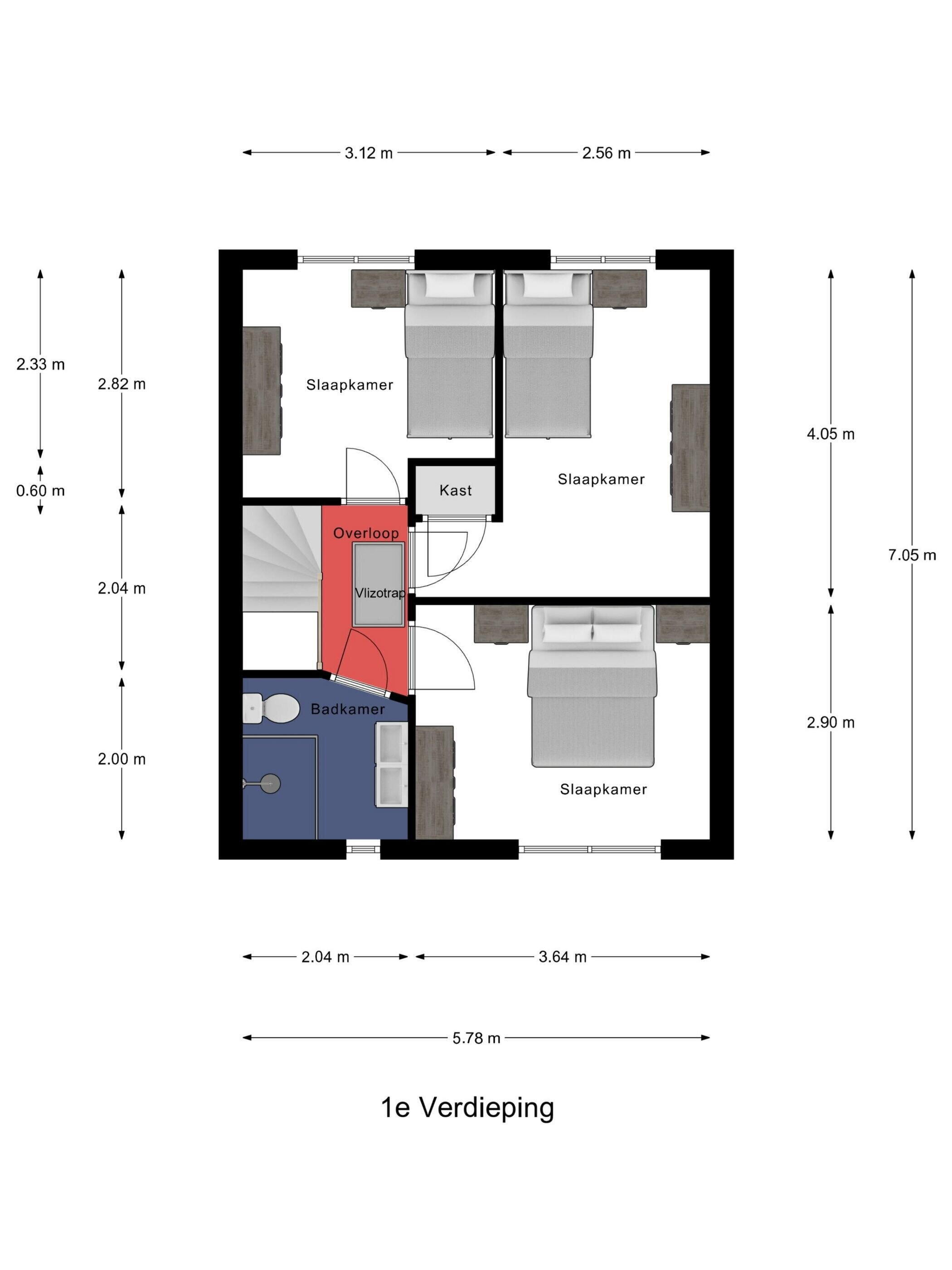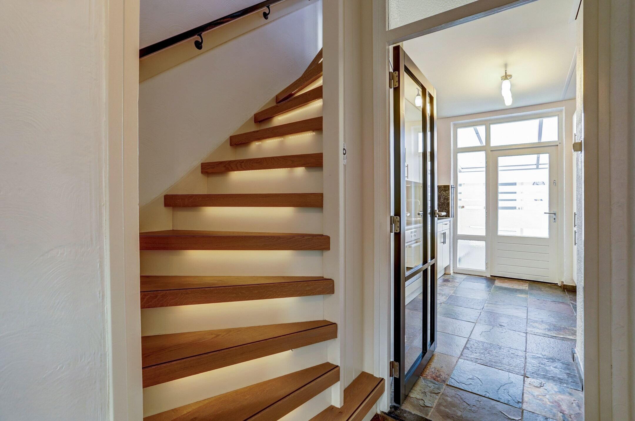 Via de trap, die circa vijf jaar geleden is gerenoveerd, bereik je de verdieping. De trap is stijlvol afgewerkt met houtlook laminaat voorzien van anti-slipstrips en subtiele ledverlichting, wat niet alleen mooi oogt maar ook extra comfort en veiligheid biedt. Boven kom je uit op de overloop die toegang geeft tot drie ruime slaapkamers en de badkamer.