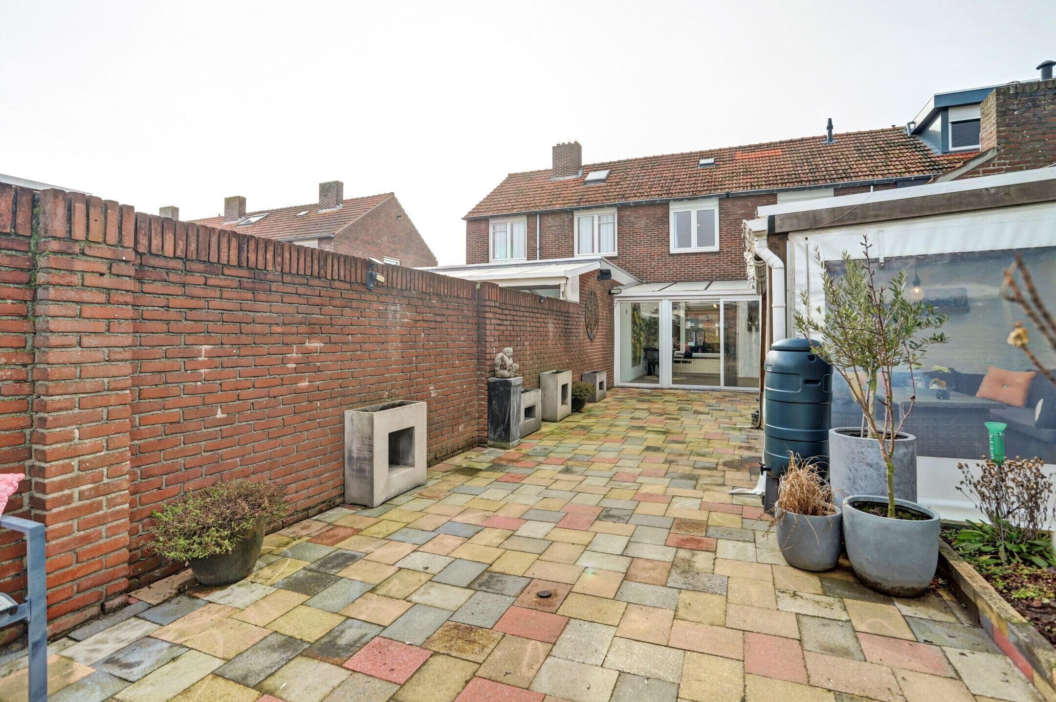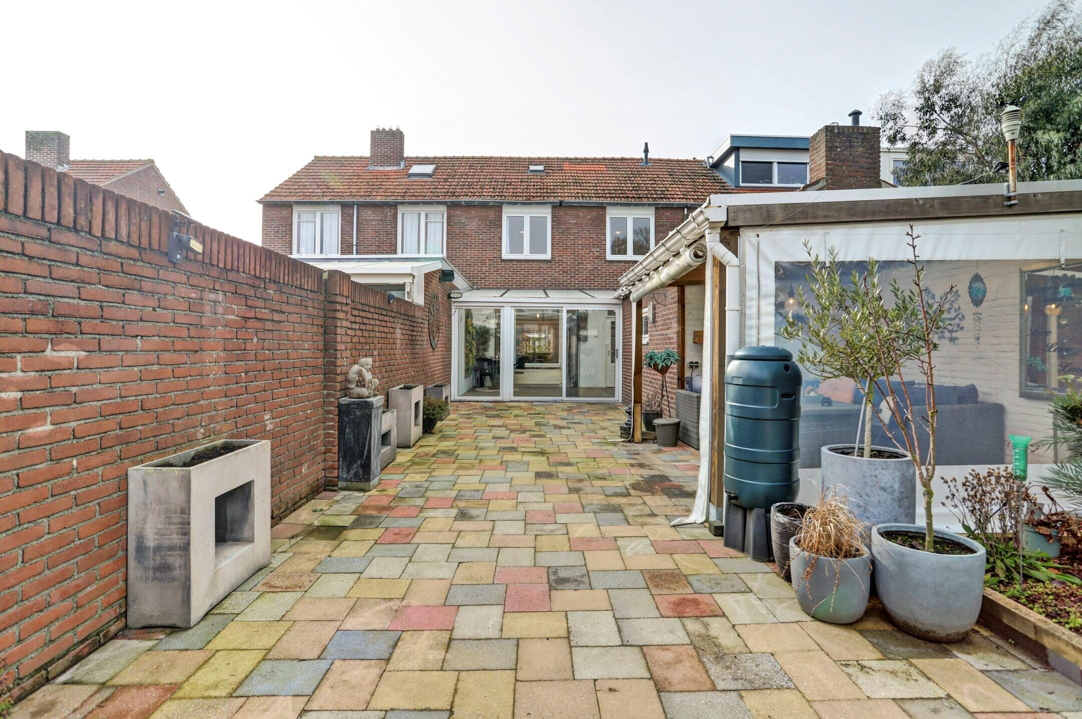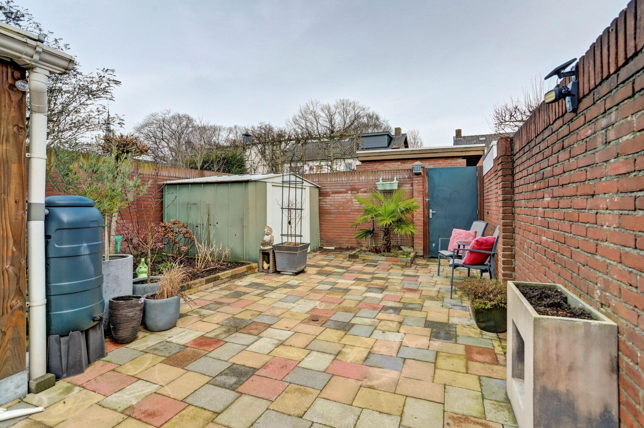 De achtertuin is onderhoudsvriendelijk aangelegd om optimaal te genieten van het buitenleven. De borders zijn overzichtelijk en makkelijk te onderhouden met een verzorgde mix van groen die het geheel een prettige, rustige uitstraling geeft zonder dat je er veel werk aan hebt. Een fijne plek is het gezellige overdekte terras dat met zeilen volledig af te sluiten is. Hierdoor zit je hier al vroeg in het voorjaar comfortabel en beschut maar kun je het bij mooier weer juist weer helemaal openen. Een fijne plek voor lange avonden, een kop koffie in de ochtend of een etentje met vrienden. De tuin is volledig omheind wat zorgt voor privacy en een veilig gevoel. Aan de achterzijde bevindt zich een poort waardoor je eenvoudig met de fiets achterom kunt. Deze kun je direct plaatsen in het fietsenhok dat praktisch achterin de tuin is geplaatst. De inrichting van de tuin maakt het mogelijk om op meerdere plekken gezellige zitjes te creëren, zowel in de zon als in de schaduw, afhankelijk van het moment van de dag. Daarnaast is er tuinverlichting aanwezig voor sfeer en functionaliteit in de avonduren, zijn er meerdere stopcontacten en is er watervoorziening beschikbaar via de witgoedaansluitingen in de berging.